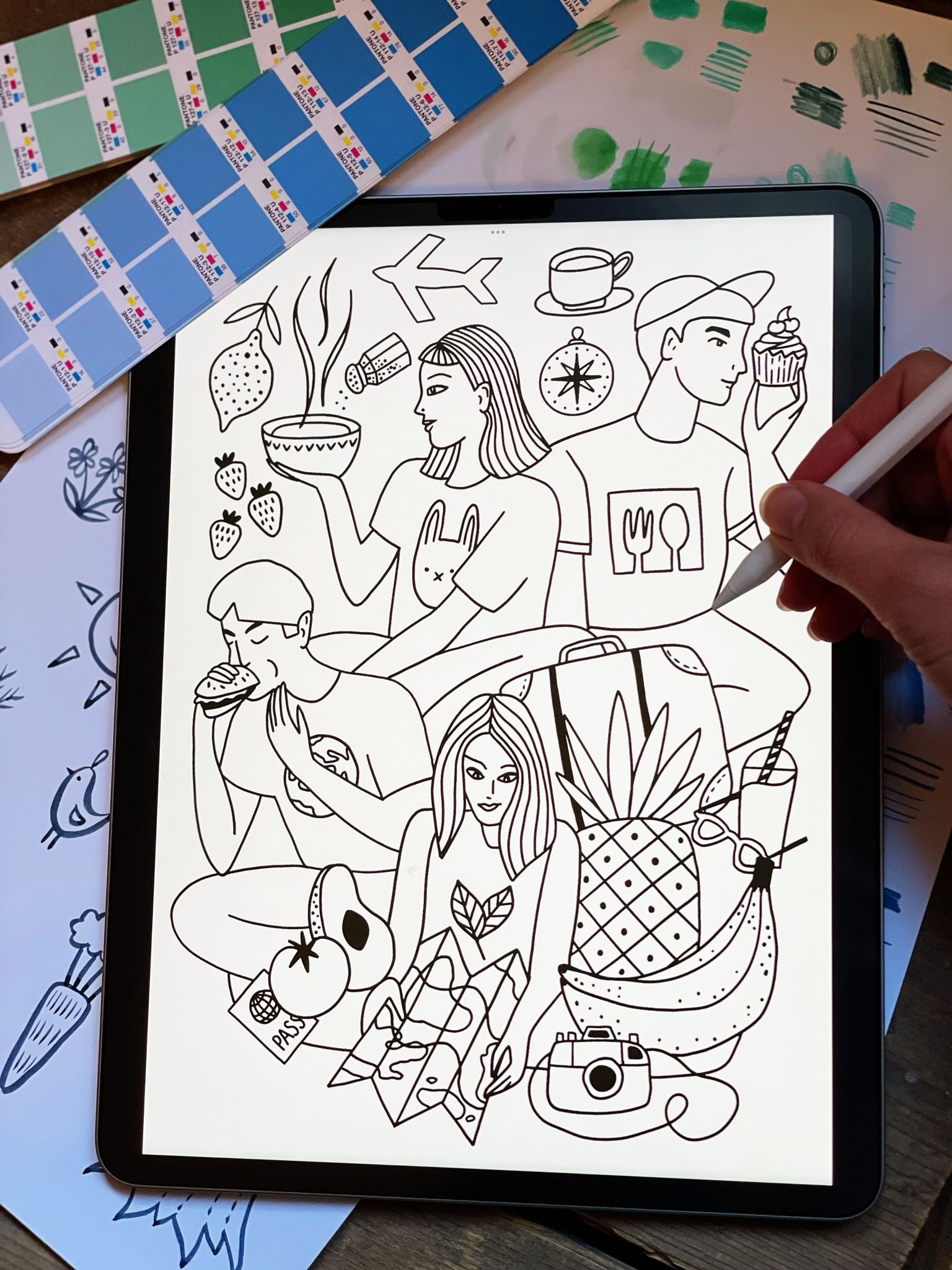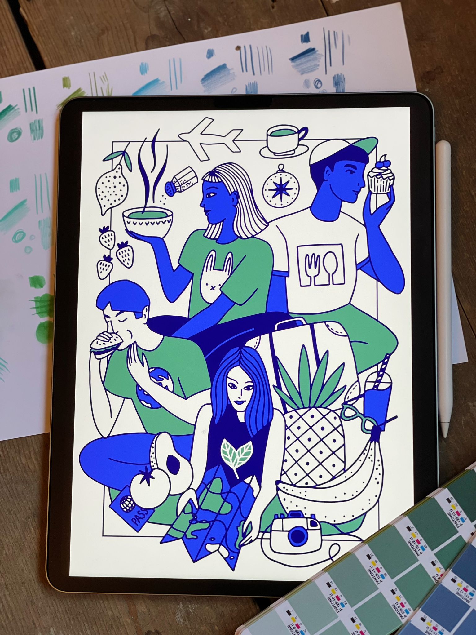 Beyond its aesthetic appeal, Kate's illustration serves a crucial role in the success of the Fussy Traveller Club's product. It grabs the attention of our customers, drawing them into the world of vegan travel and making a strong visual statement. Customers have not only praised the beauty of the artwork but also cherished it as a standalone piece, demonstrating the profound connection between Kate's art and our brand's identity.